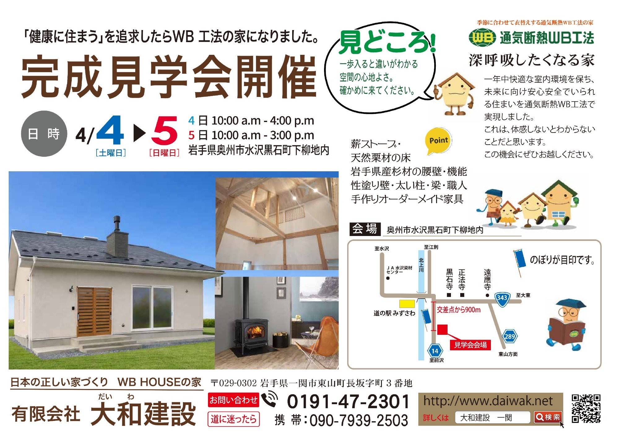 岩手県一関市東山町松川字中通地内 通気断熱WB工法の家完成見学会